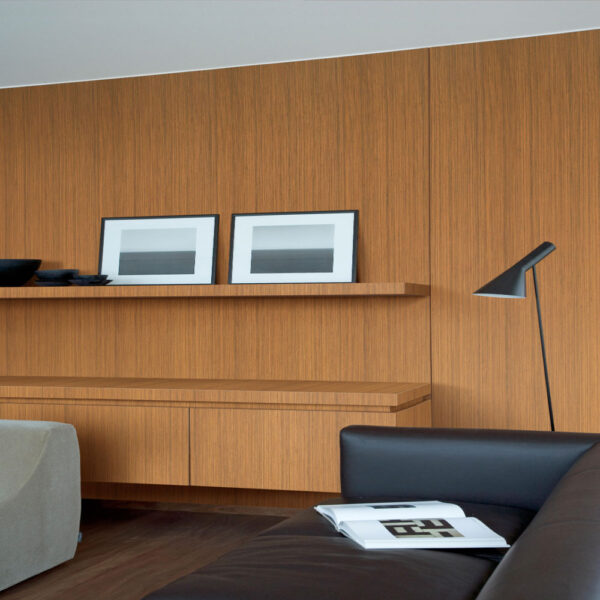 Figure: Iroko veneer can exhibit a variety of figures, including ribbon stripes, mottled patterns, or occasional dark streaks, adding character to the wood.